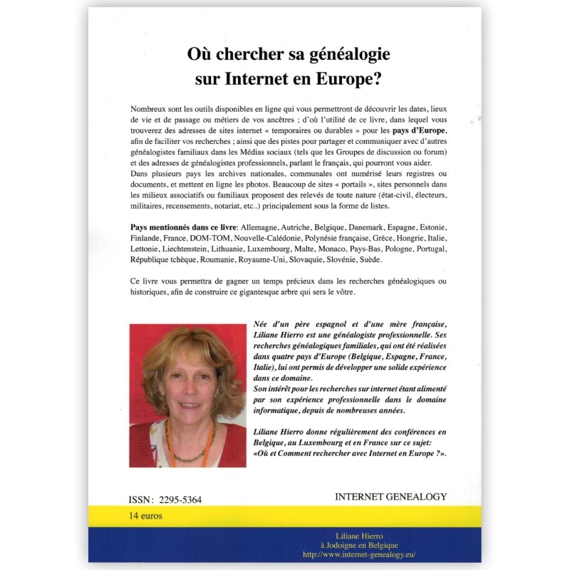 Nombreux sont les outils disponibles en ligne qui vous permettront de découvrir les dates, lieux de vie et de passage ou métiers de vos ancêtres ; d’où l’utilité de ce livre, dans lequel vous trouverez des adresses de sites internet « temporaires ou durables » pour les pays d’Europe, afin de faciliter vos recherches ; ainsi que des pistes pour partager et communiquer avec d’autres généalogistes.